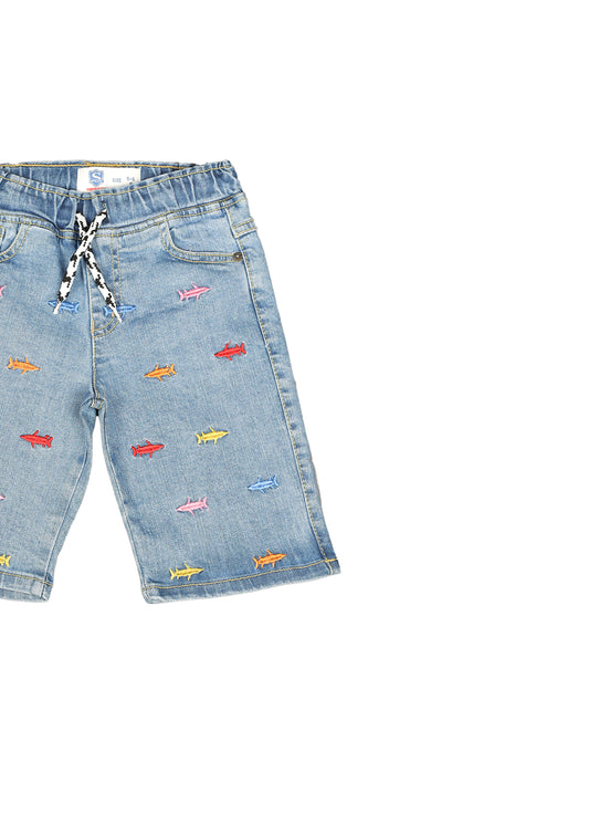 Elastic Waist Embroidered Denim Short
